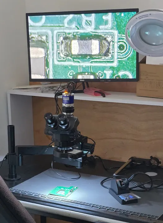 Manual soldering and assembly using professional equipment, magnification and temperature-controlled tools.